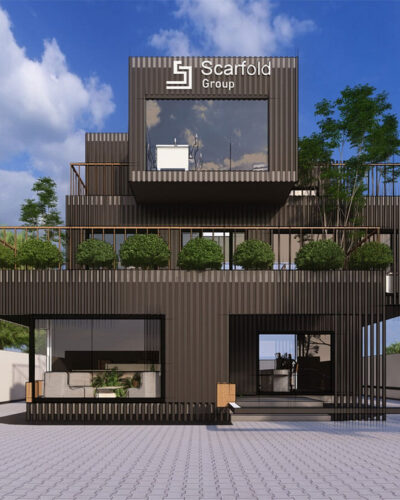 Scarfold Group Building in Tema This project involved the custom design of a luxury office building for a technology company in Tema. The building was developed using a steel frame
