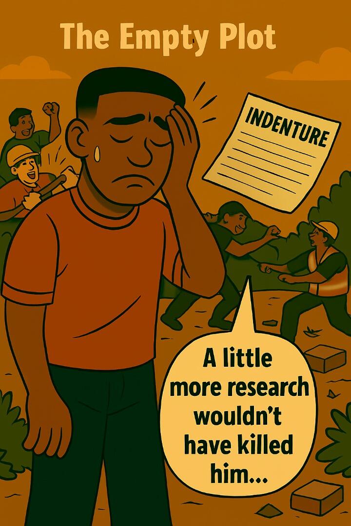 Kwame visits the land and it looks perfect. Green, peaceful, and even has a big signboard saying “Prime Spot – Limited Plots”. The agent keeps checking his phone like he has hundreds of buyers on hold.